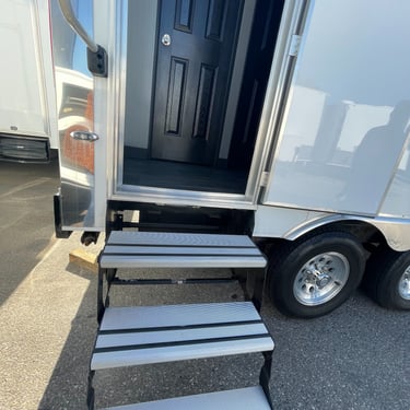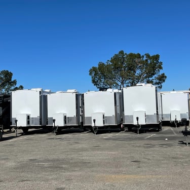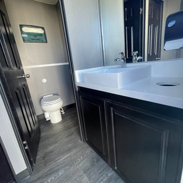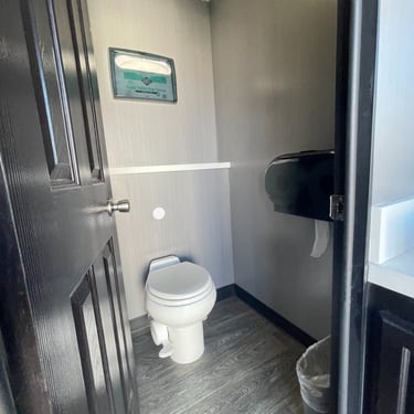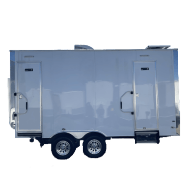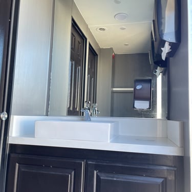 This Luxury Four Stall Two Door restroom trailer provides a comfortable & homelike experience for your quest or employees. This unit is equipped with an A/C system, Sound system to take care of business in comfort with additional privacy, unlike a standard porta potty. Our Four Stall Two Door restroom trailer is perfect for all occasions such as corporate events, weddings, concerts, public events, and more.