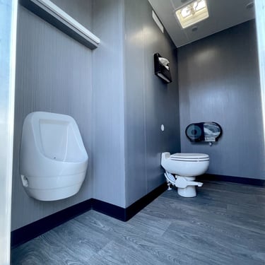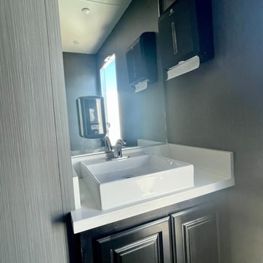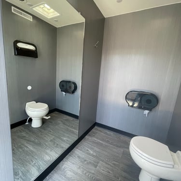 This Luxury Two Stall Two Door restroom trailer provides a comfortable & homelike experience for your quest or employees. This unit is equipped with an A/C system, Sound system to take care of business in comfort with additional privacy, unlike a standard porta potty. Our Luxury Two Stall Two Door restroom trailer is perfect for all occasions such as corporate events, weddings, concerts, public events, and more.